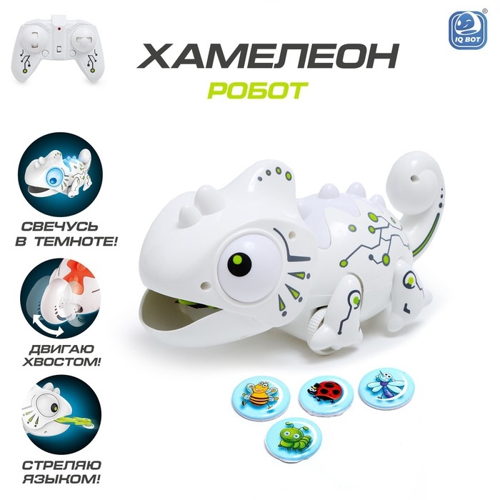 Робот «Хамелеон» IQ BOT, на пульте управления, интерактивный: звук, свет, на батарейках
