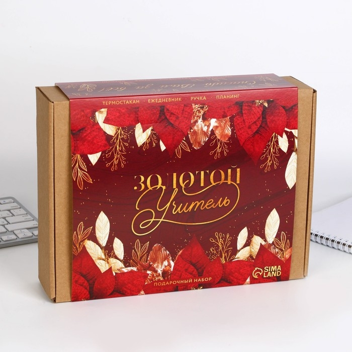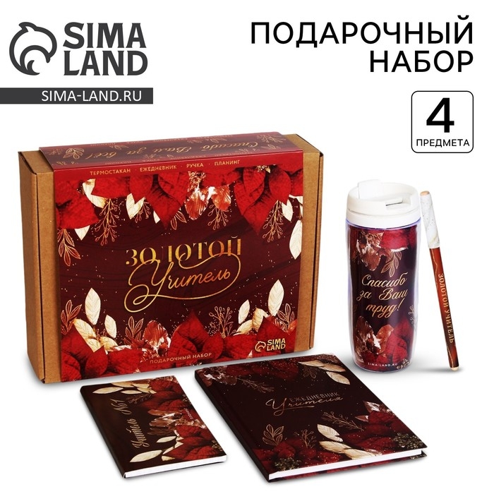 Подарочный набор «Золотой учитель» : планинг 50 листов, ежедневник А5, 80 листов, термостакан 350 мл, ручка