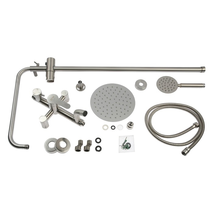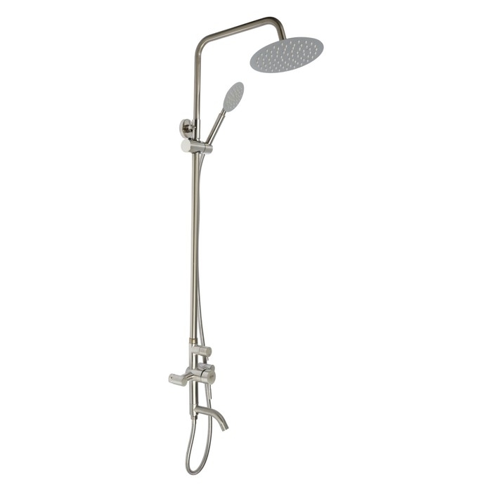 Душевая система ZEIN Z1008, смеситель, тропическая и ручная лейка, стойка, круглая, сатин