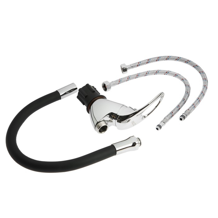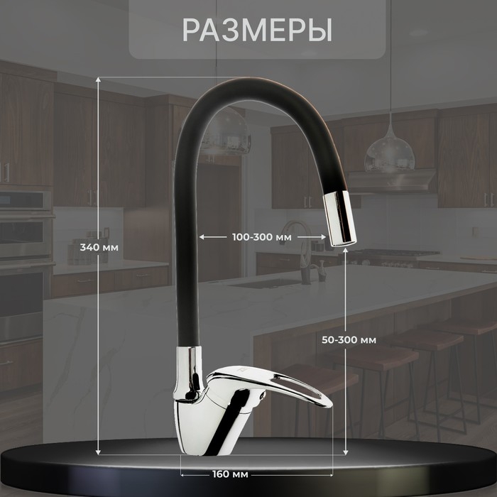 Смеситель для кухни ZEIN Z2073F, силиконовый излив, картридж 40 мм, латунь, черный/хром