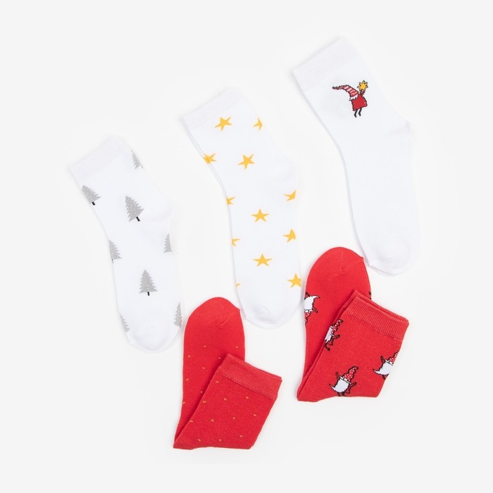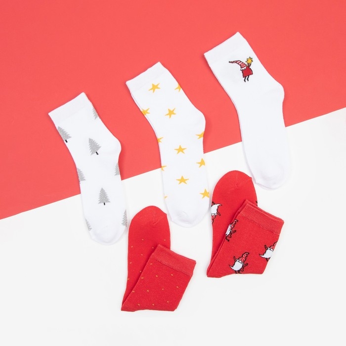 Набор новогодних женских носков KAFTAN "Гномы" р. 36-39 (23-25 см), 5 пар
