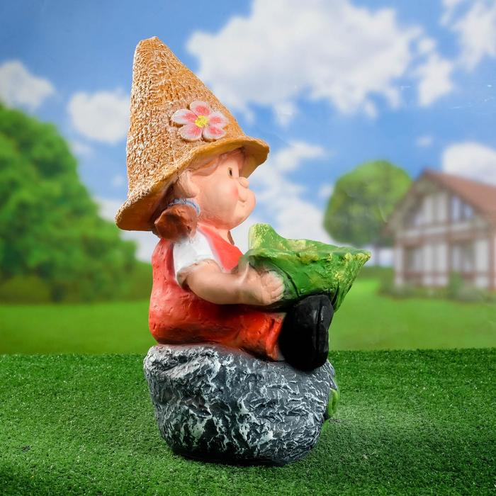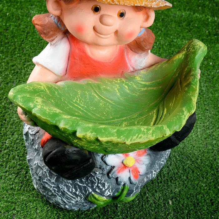 Садовая фигура "Девочка на камне с листом" 48х29см