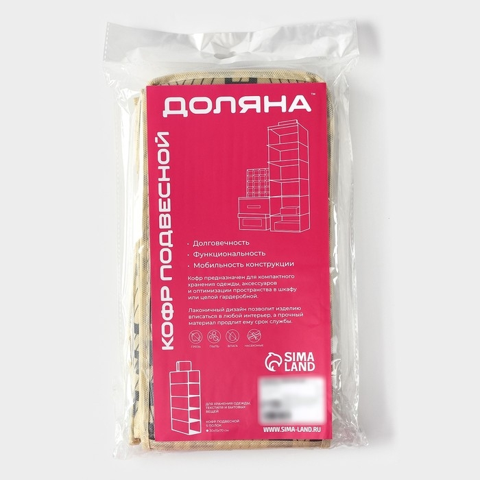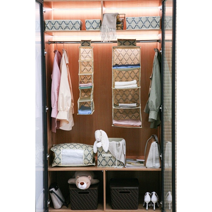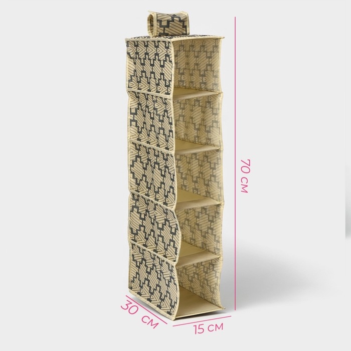 Органайзер подвесной Доляна «Гэтс», 5 отделений, 30×15×70 см, цвет бежевый