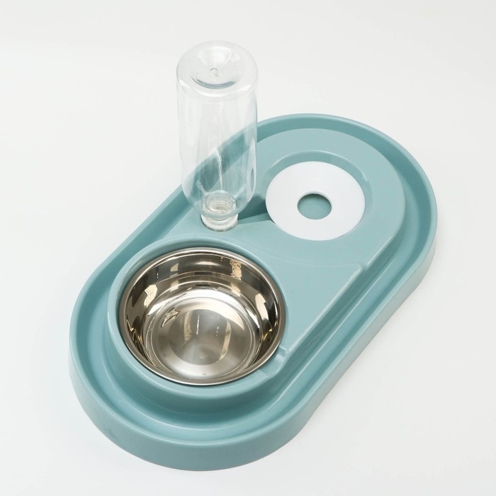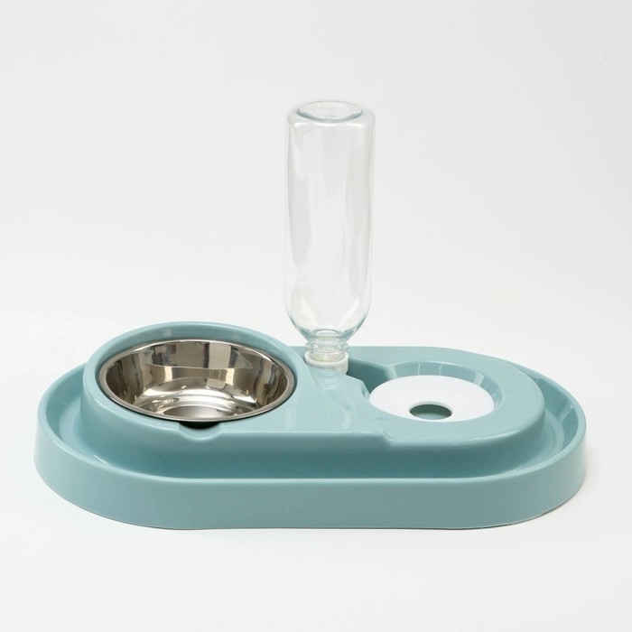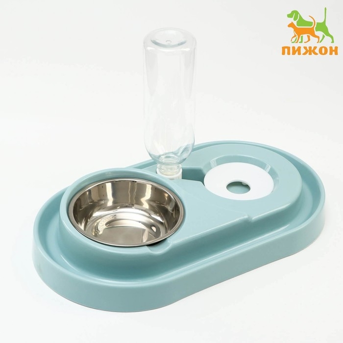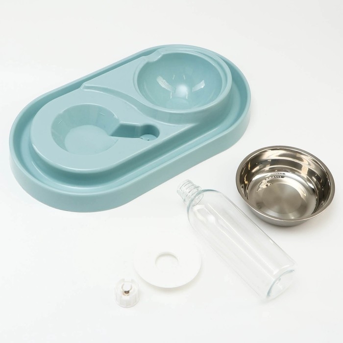 Миска двойная с автопоилкой (съёмная бутылка) 40,5 х 23 х 25 см, голубая