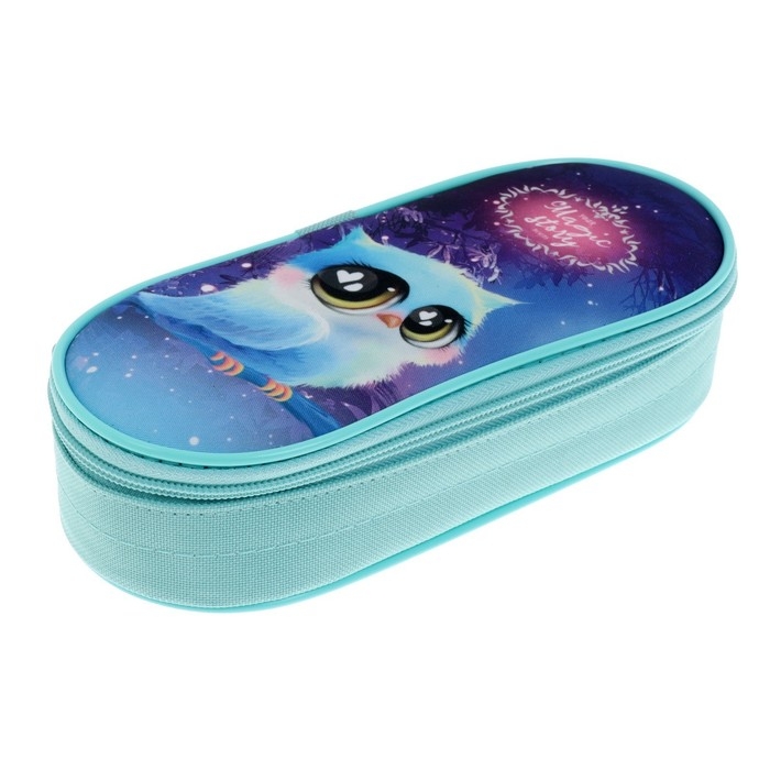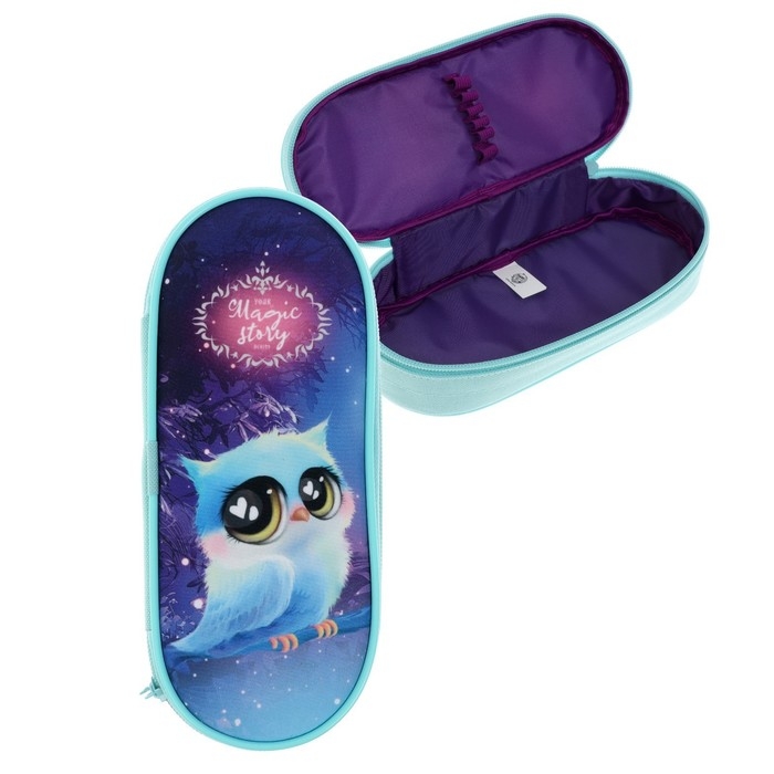 Пенал-футляр 95 х 205 х 45 мм, мягкий, текстильный, Calligrata, ПМК 27-20 резинка на клапане, "Совушка"