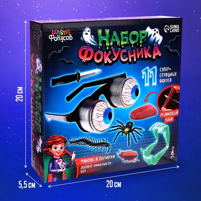 Приветствуем юных фокусников! Этот набор перенесёт вас в мир захватывающих и страшных шоу! С таким набором вы сможете разыграть своих близких. Создавайте уникальные образы, невероятные программы и поражайте публику.