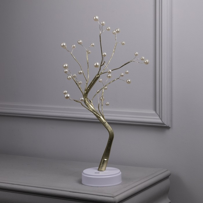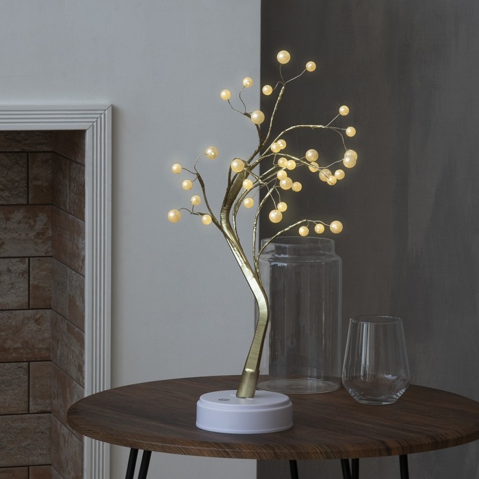 Светодиодный куст «Жемчужины золотистые» 45 см, 36 LED, постоянное свечение, батарейки ААх3 (не в комплекте), USB, свечение тёплое белое