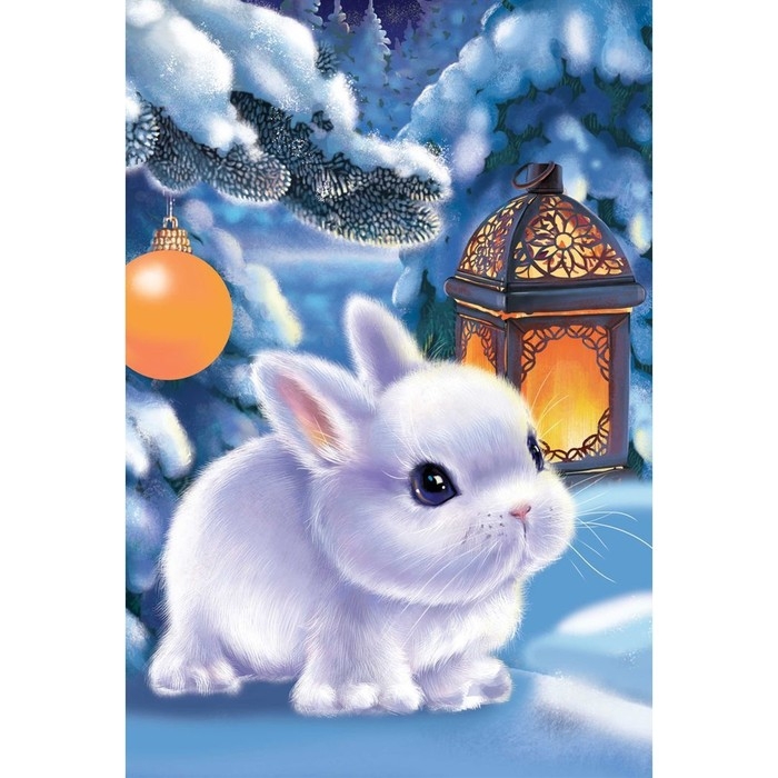 Новогодняя картина по номерам на холсте с подрамником «Новый год! Кролик с фонариком», 20 × 30 см
