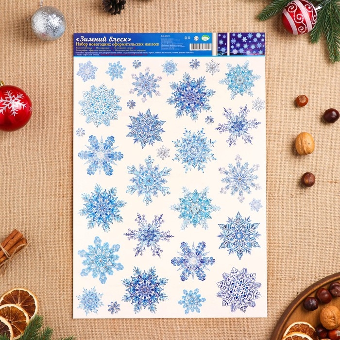 Набор наклеек оформительский "Зимний блеск" голографическая фольга, 49,3х33,6см