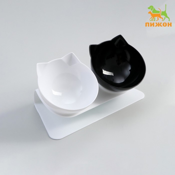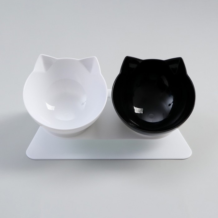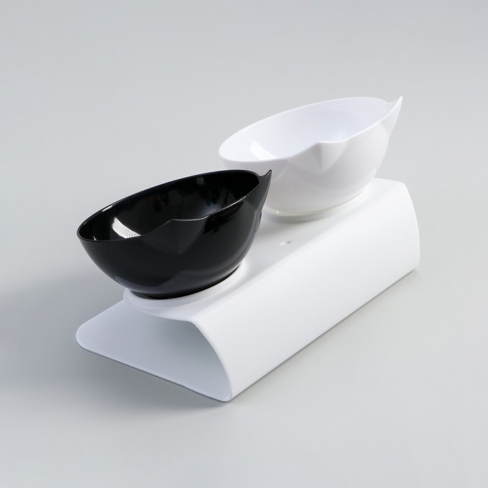 Миски пластиковые на белой подставке 27,5 х 14 х 15 см чёрная/белая