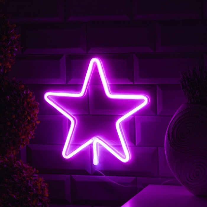 Неоновая вывеска «Звезда» 28 × 28 см, батарейки ААх3 (не в комплекте), USB, свечение розовое