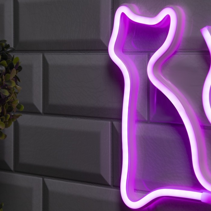 Неоновая вывеска «Кошка» 16 × 23 см, батарейки ААх3 (не в комплекте), USB, свечение розовое