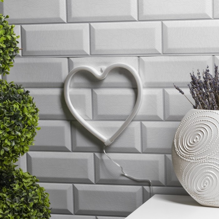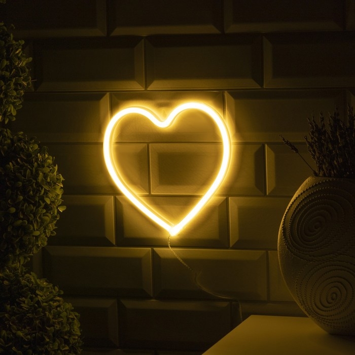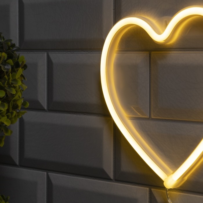 Неоновая вывеска «Сердце» 20 × 20 см, батарейки ААх3 (не в комплекте), USB, свечение тёплое белое