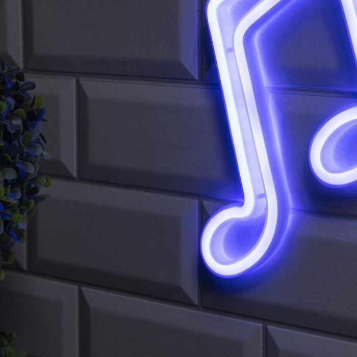 Неоновая вывеска «Ноты» 19 × 21 см, батарейки ААх3 (не в комплекте), USB, свечение голубое