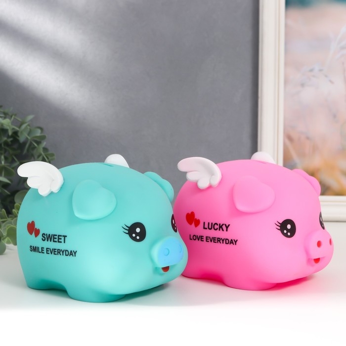 Копилка пластик "Свинка с крылышками" МИКС 12,5х15,5х11,5 см