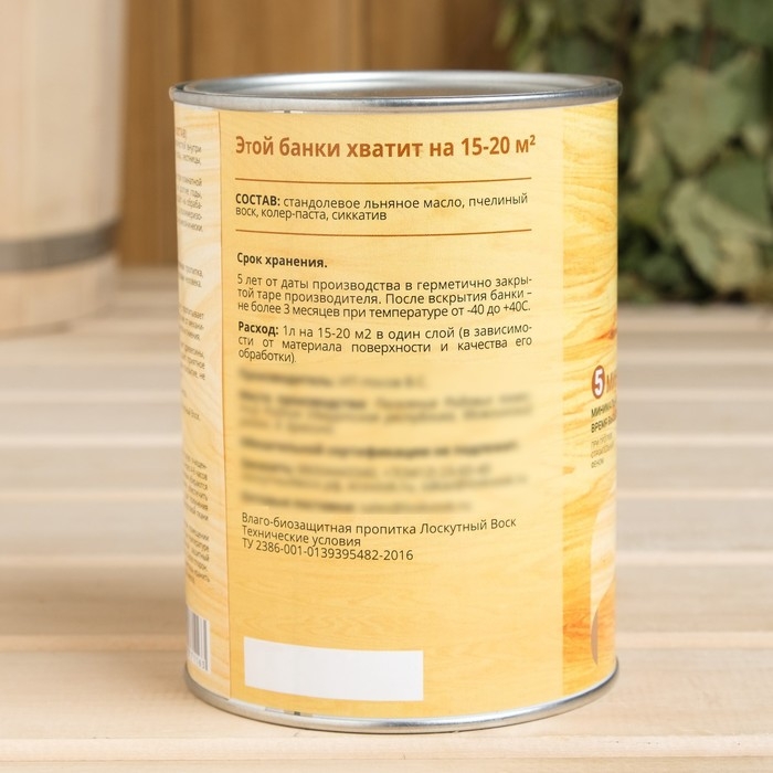 Влаго-биозащитная пропитка "Лоскутный воск ДЕКОР", белый, 1л, железная банка