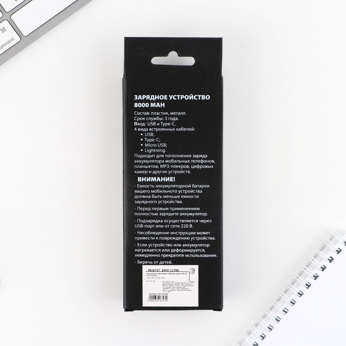 Зарядное устройство «Достояние», 8000мА,модель PB-20, 14,5 х 6,9 см