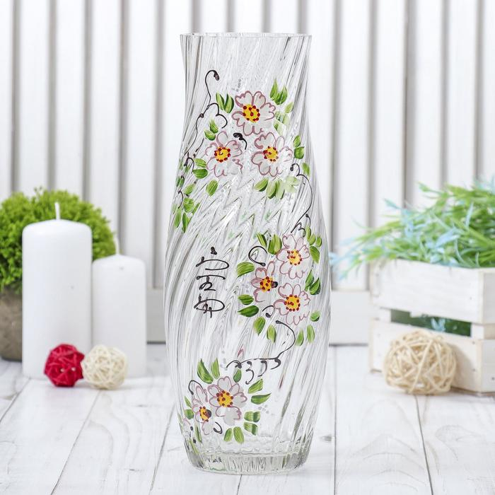Ваза "Гранд" ромашка, риф. (ручная роспись) 26 см