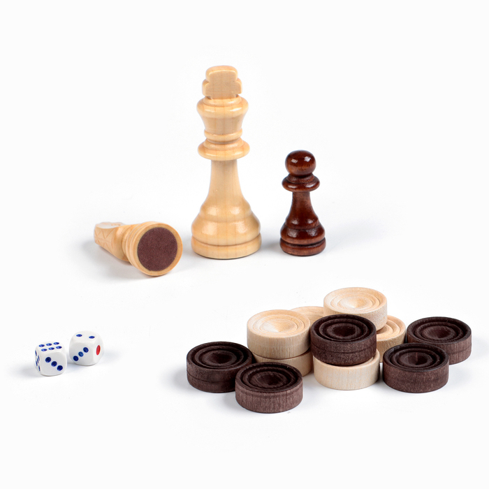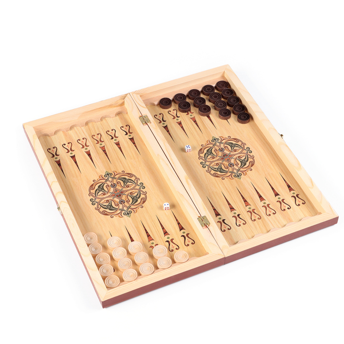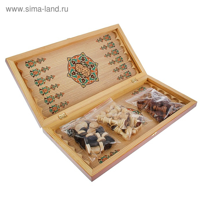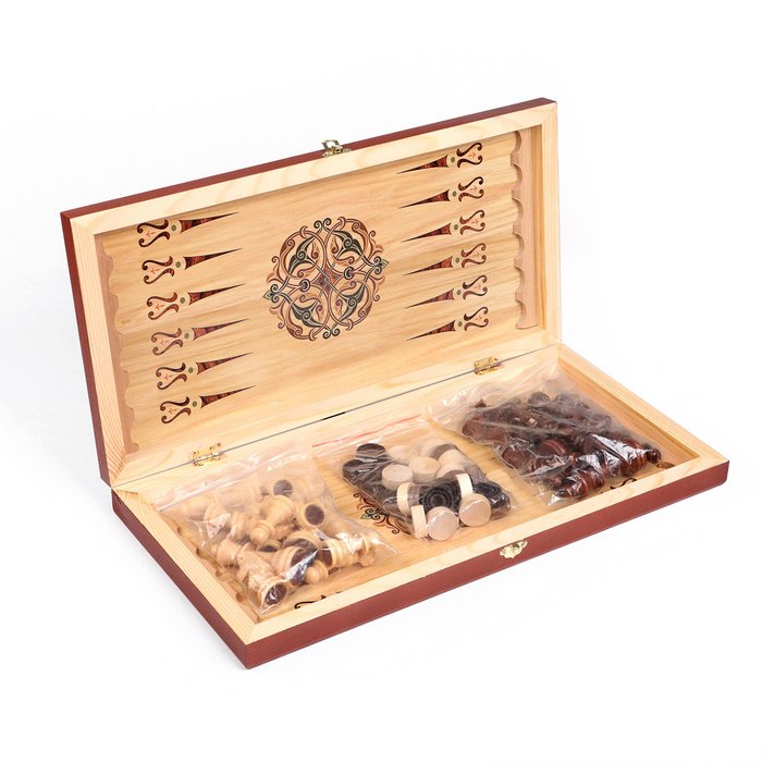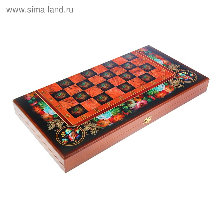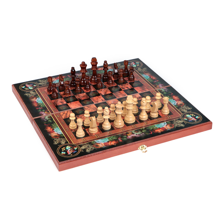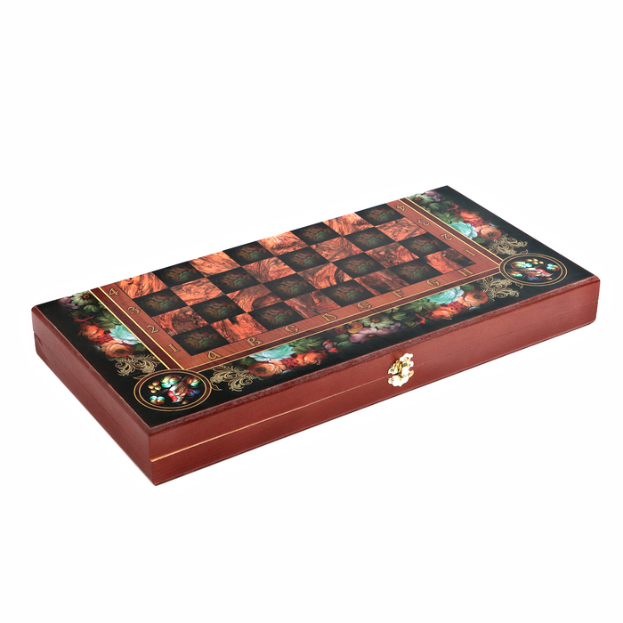 Настольные игры 3 в 1 "Цветы": шахматы, шашки, нарды, деревянные, большие 50 х 50 см