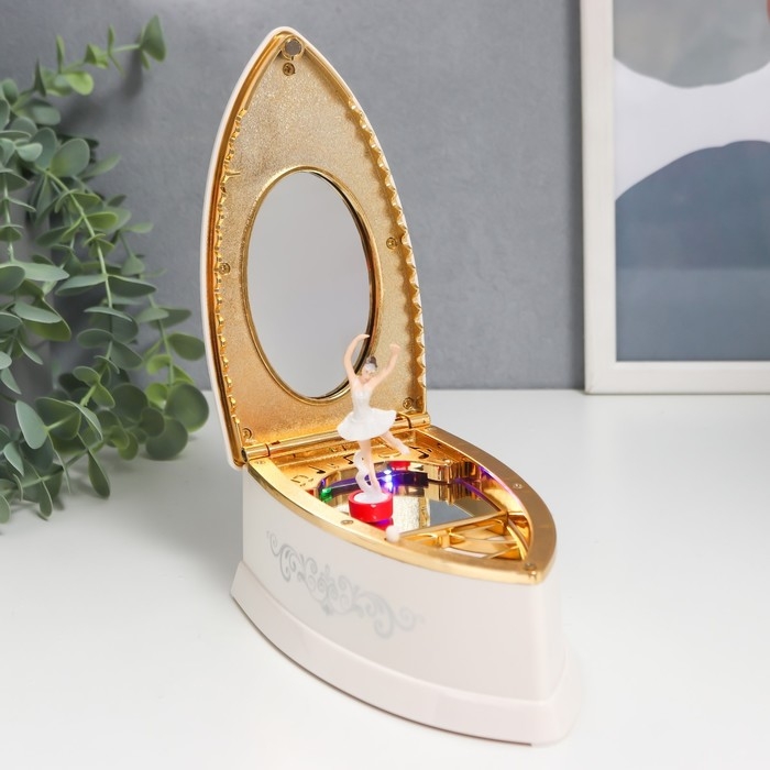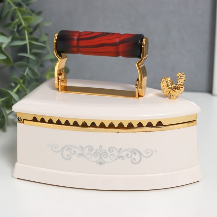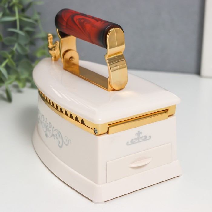 Шкатулка музыкальная механическая "Ретро утюг" белый 9х16х12 см