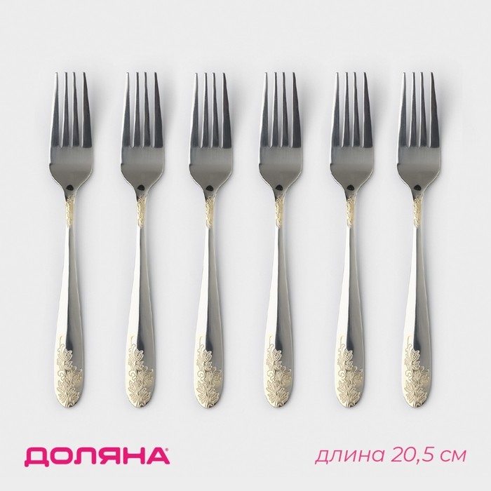Набор вилок столовых из нержавеющей стали Доляна «Букет», h=20,5 см, 6 шт, цвет серебряный