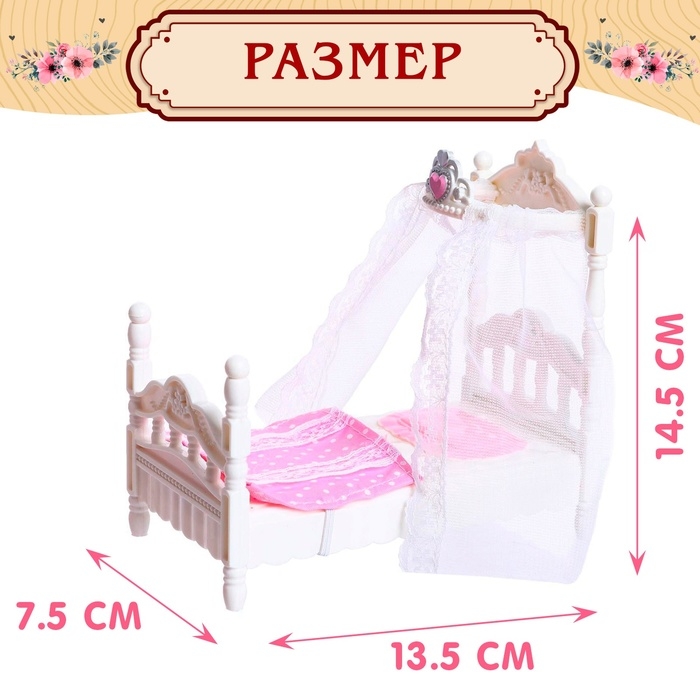 Кровать кукольная, с комплектом белья: матрас, подушка, одеяло (48х30см)