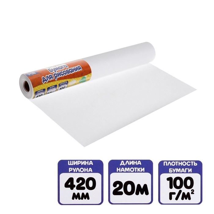 Бумага для рисования, в рулоне, ширина 41 см, длина 20 м, Calligrata, 100 г/м2