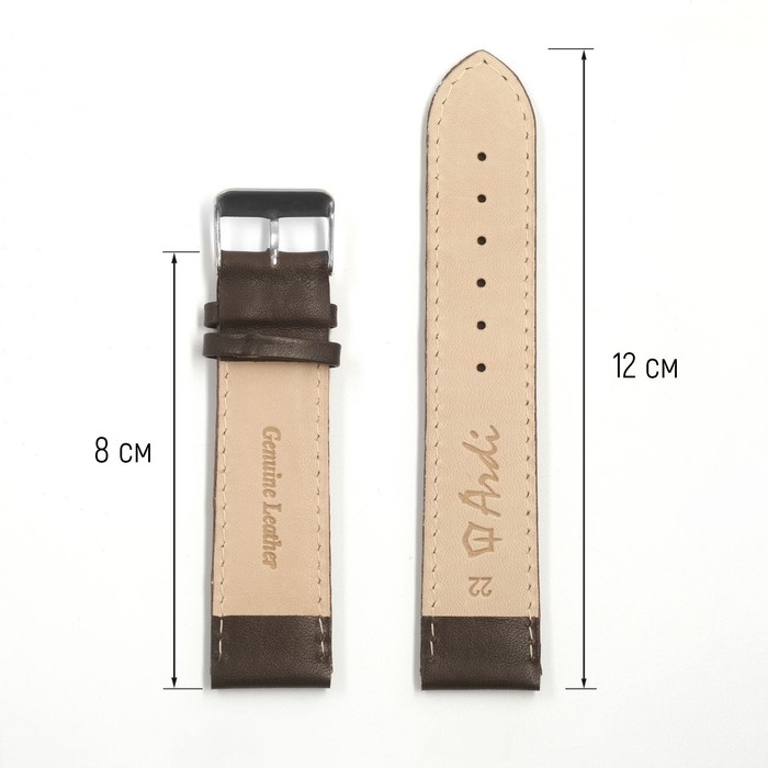Ремешок для часов, 22 мм, запряжник 80 мм, горт 120 мм, натуральная кожа, коричневый