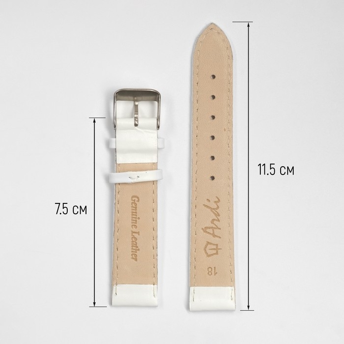 Ремешок для часов, 18 мм, запряжник 75 мм, горт 115 мм, натуральная кожа, белый