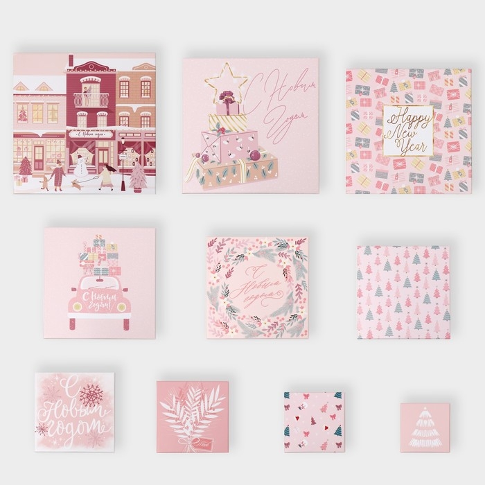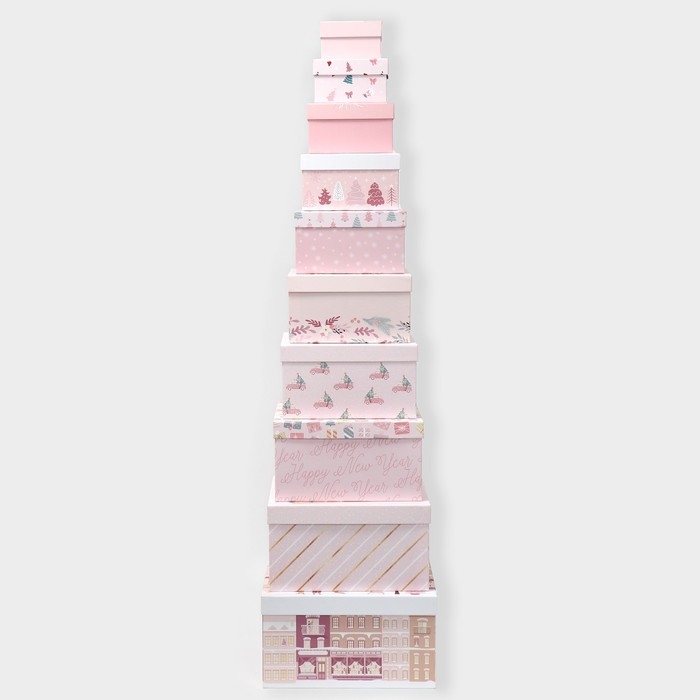 Набор подарочных коробок 10 в 1 «Happy New year», 10 х 10 х 6 ‒ 28 х 28 х 15 см, Новый год