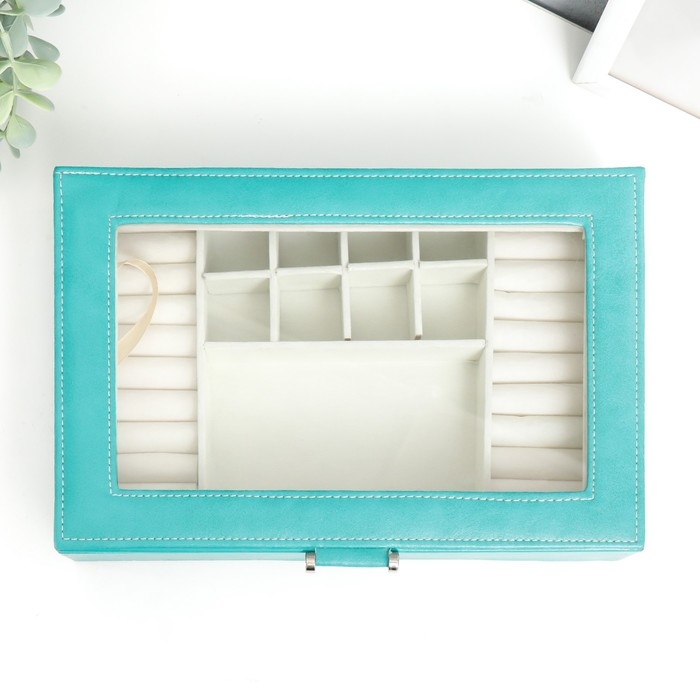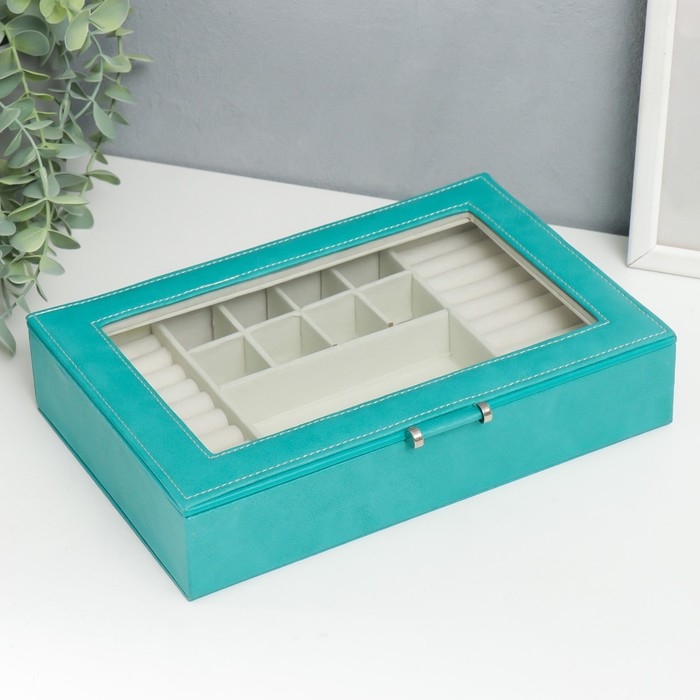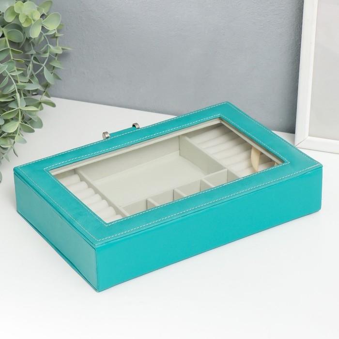 Шкатулка кожзам для украшений "Хэмптонс" голубая 5,5х27х18 см