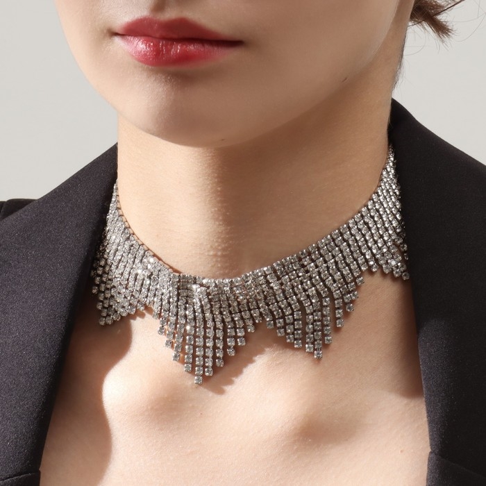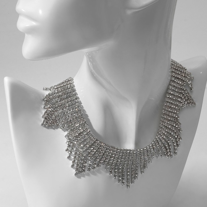 Колье «Водопад» сталактиты, цвет белый в серебре, 30 см
