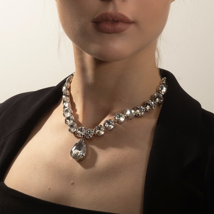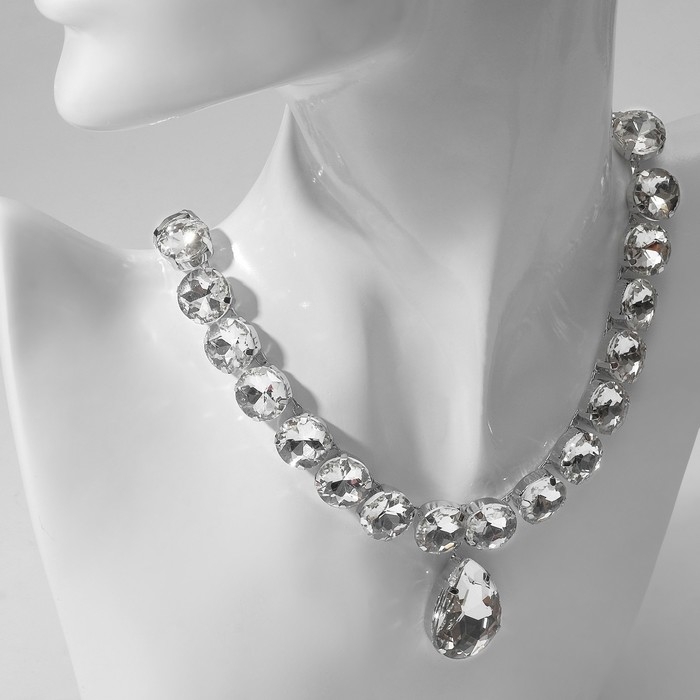 Колье «Драгоценность» капля, цвет белый в серебре, 34 см