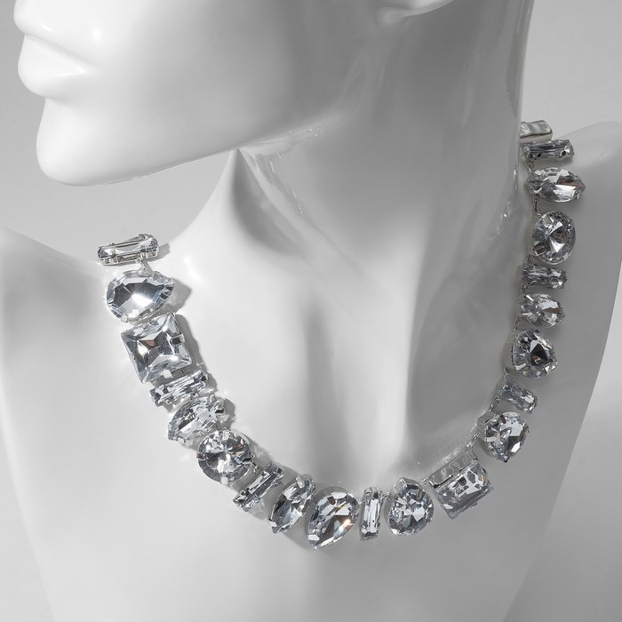 Колье «Драгоценность» геометрия, цвет белый в серебре, 32 см