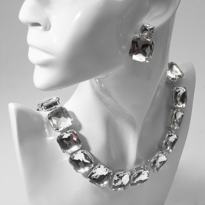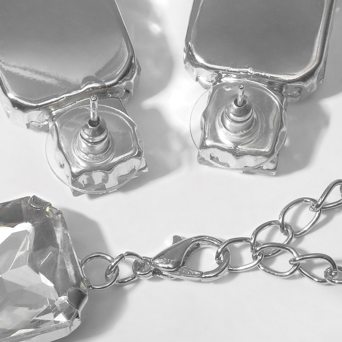 Набор 2 предмета: серьги, колье «Драгоценность» квадраты, цвет белый в серебре, 32 см