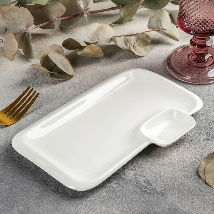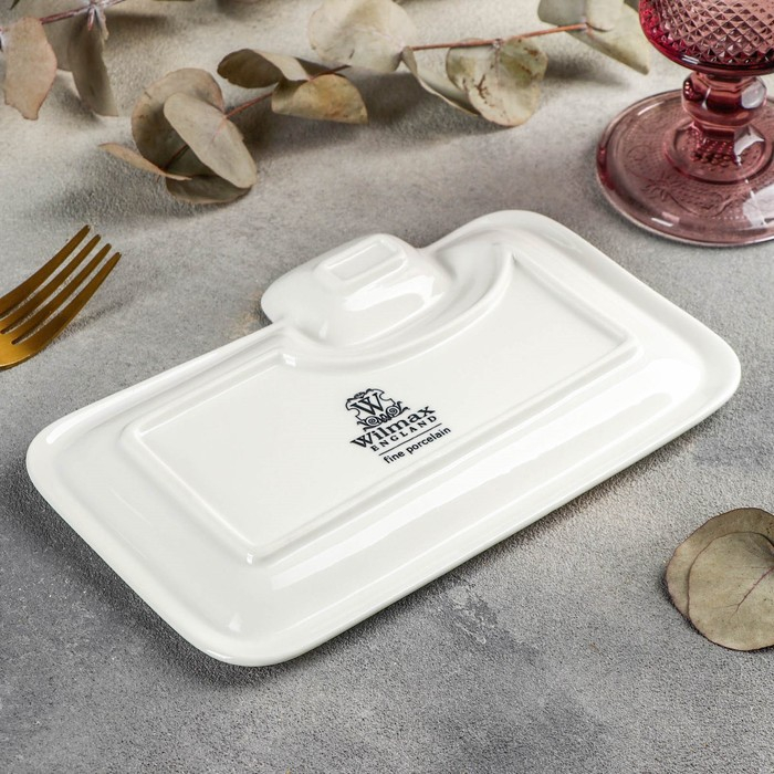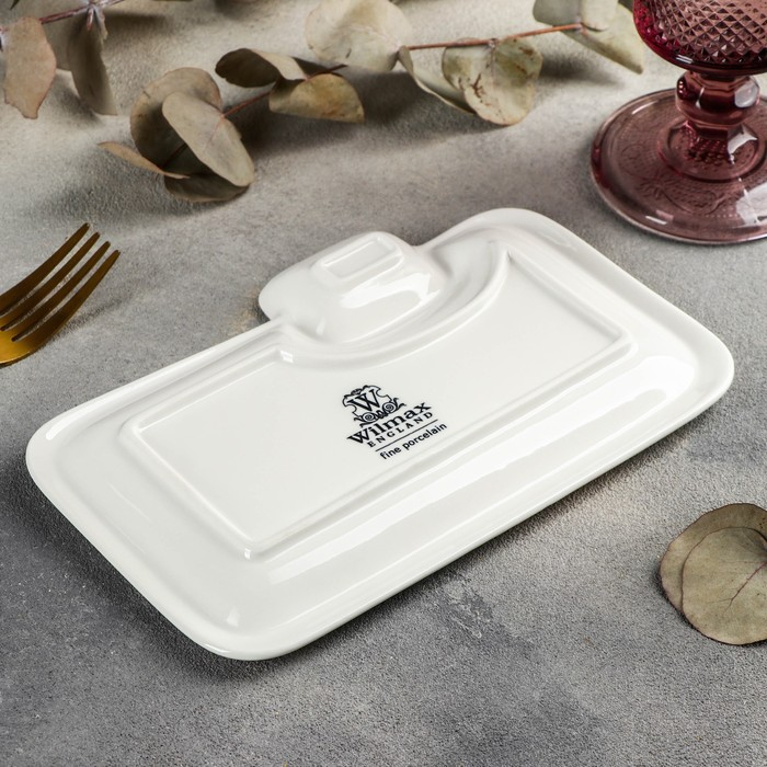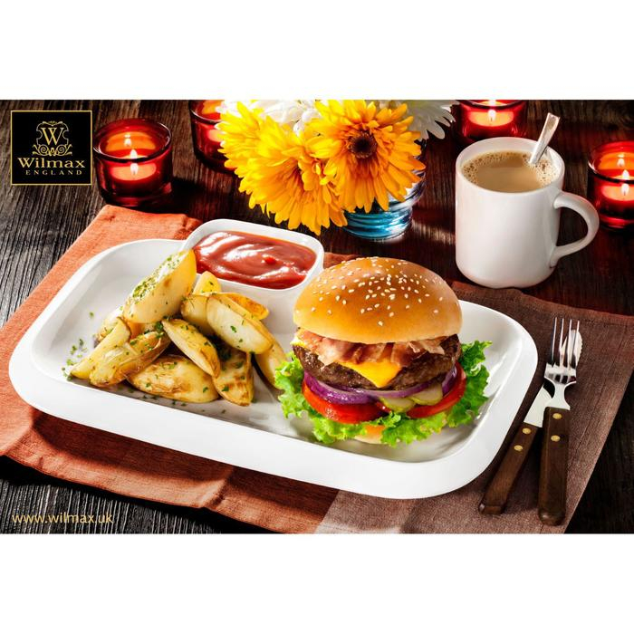 Блюдо фарфоровое прямоугольное с соусником Wilmax Teona, 20×12 см, цвет белый