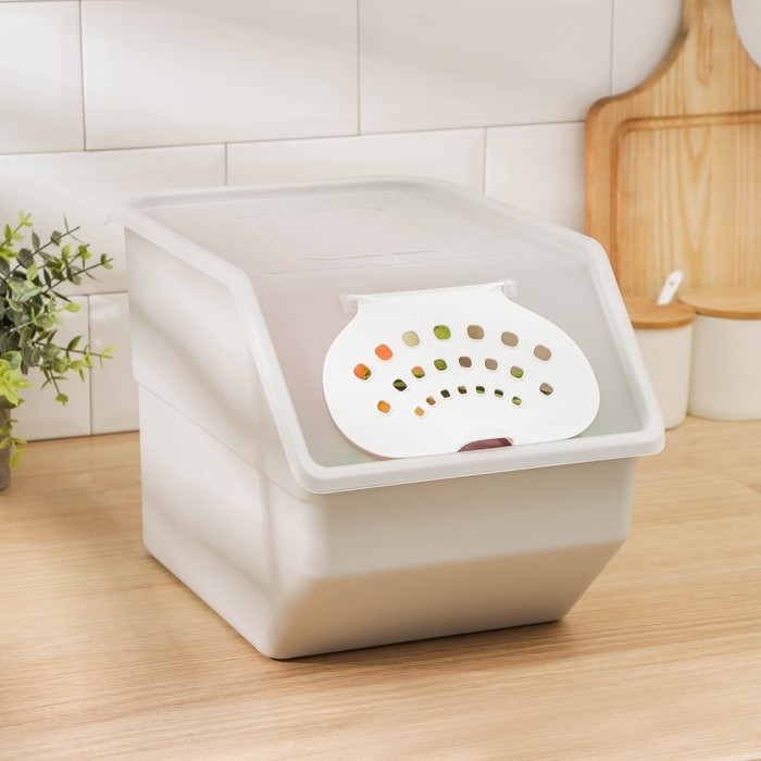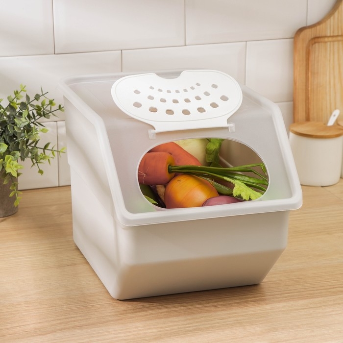 Контейнер для хранения овощей предназначен для длительного хранения овощей. Благодаря системе вентиляции овощи в ящике долго остаются свежими, полезными, а также это позволяет избежать их гниения и появления плесени. Поставьте контейнеры друг на друга, чтобы сэкономить место на кухне. Компактный ящик для хранения позволяет поместить его на кухню, балкон или дачу.