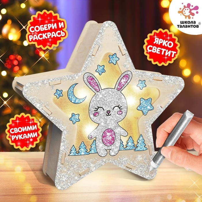 Набор для творчества «Новогодний ночник из дерева», Зайчик