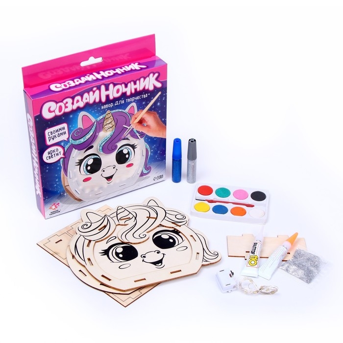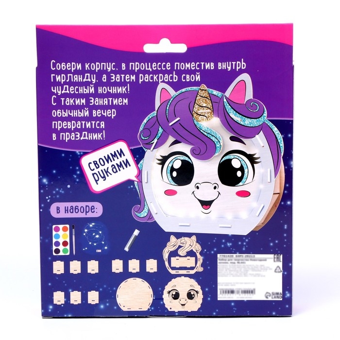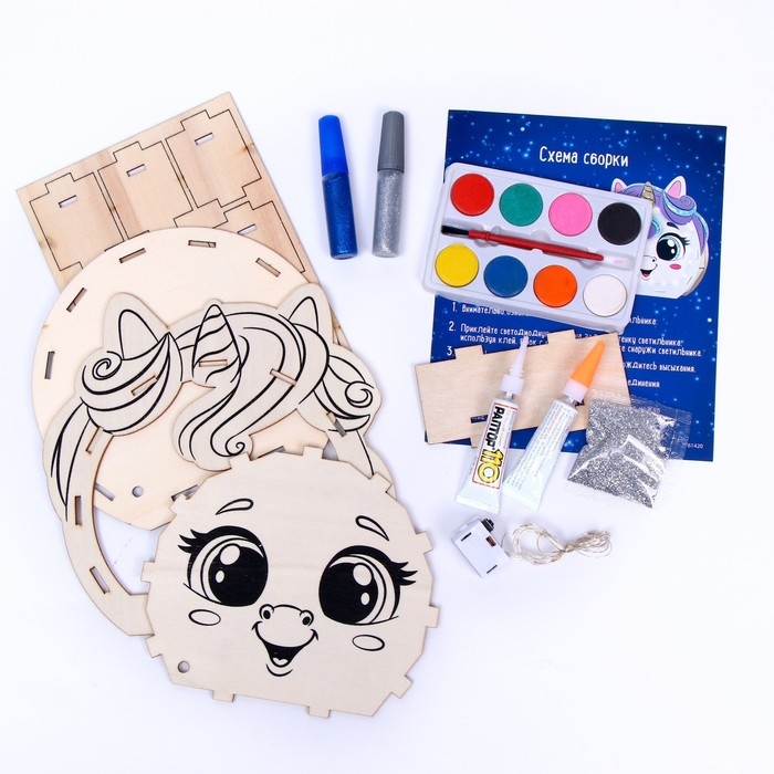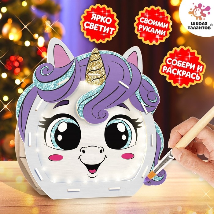 Набор для творчества «Новогодний ночник из дерева. Единорог», роспись, сборный, 5+