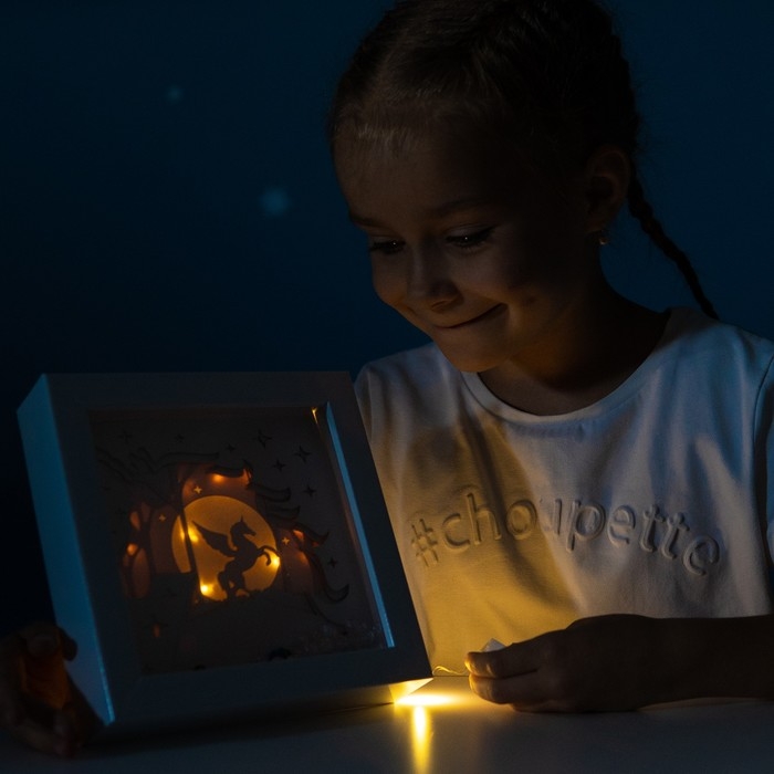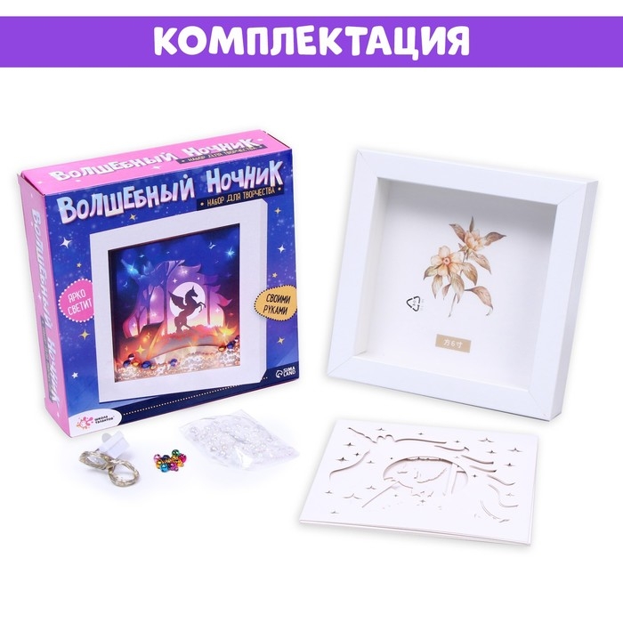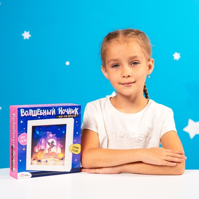 С таким набором для творчества ребёнок своими руками сделает уникальный ночник, который будет его радовать перед сном. Сборка ночника с картинкой внутри поможет развить творческие способности ребёнка. А ещё подарит радость и новогоднее настроение всей семье. Создайте волшебную атмосферу праздника!