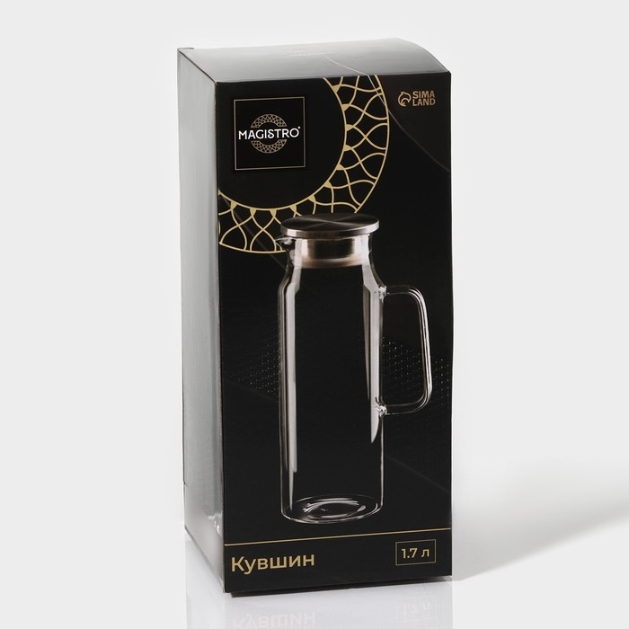 Кувшин для воды стеклянный с металлической крышкой Magistro «Богема», 1,7 л, 10×27,5 см, цвет крышки серебряный