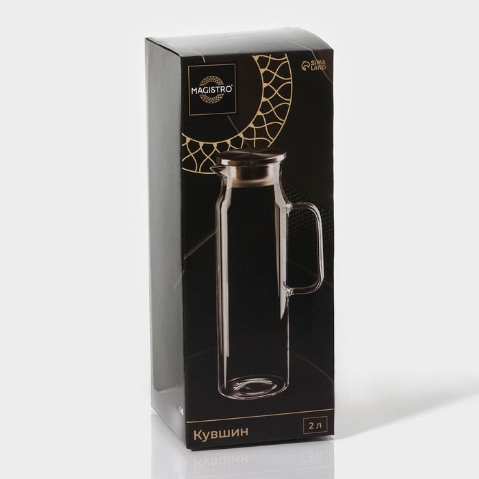 Кувшин для воды стеклянный с металлической крышкой Magistro «Богема», 2 л, 9,7×32 см, цвет крышки серебряный