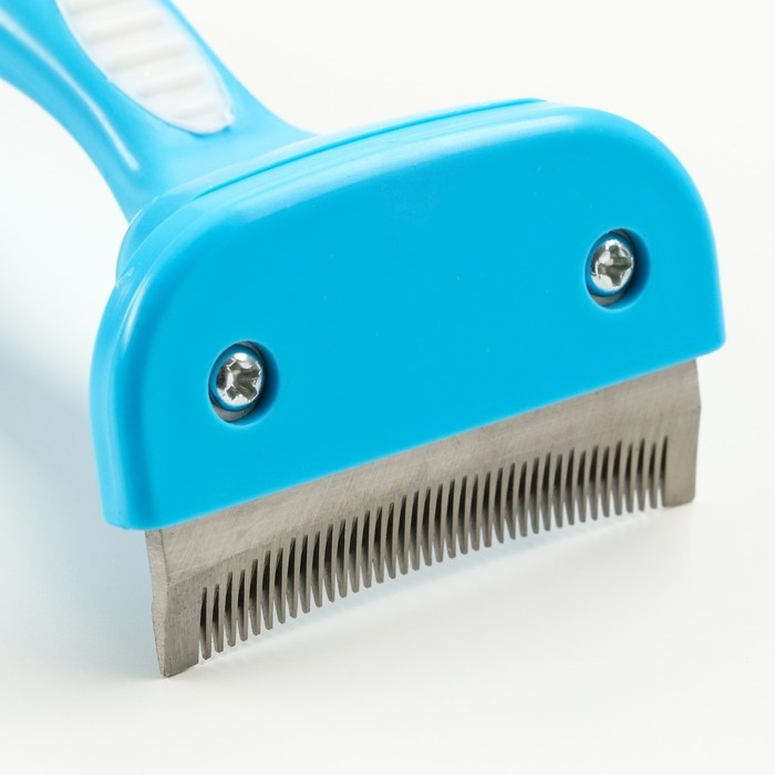 Дешеддер эффективно удаляет мёртвый подшёрсток у животных и предупреждает образование колтунов. Дугообразно расположенные зубцы не травмируют питомцев, а съёмная ручка с эластичными выступами не даёт изделию скользить в ладони.