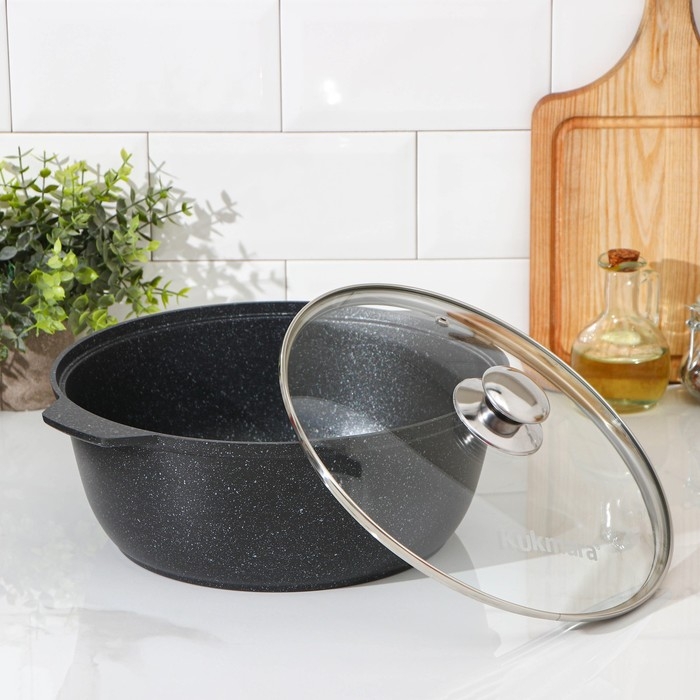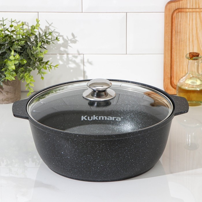 Кастрюля Kukmara сделана из литого алюминия и имеет уникальное ультрапрочное антипригарное покрытие Ultra granit.
