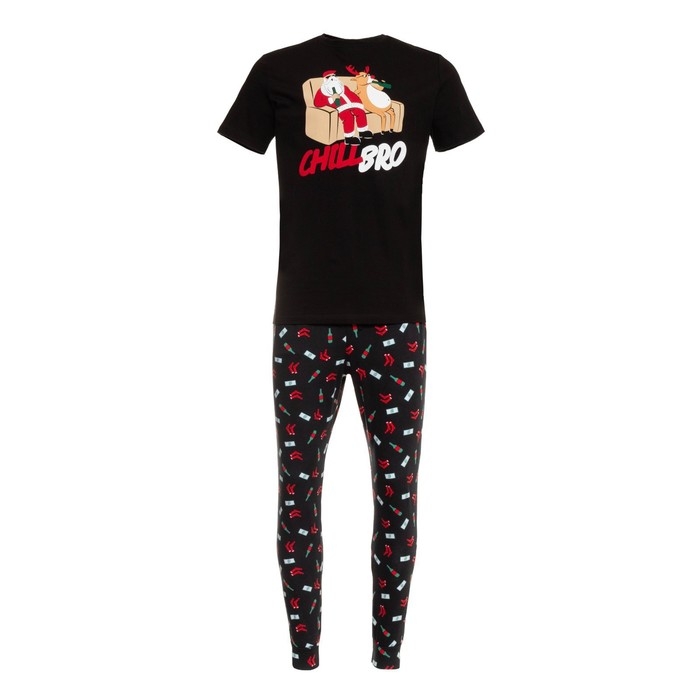 Пижама новогодняя мужская KAFTAN "Chill bro", цвет чёрный, размер 52