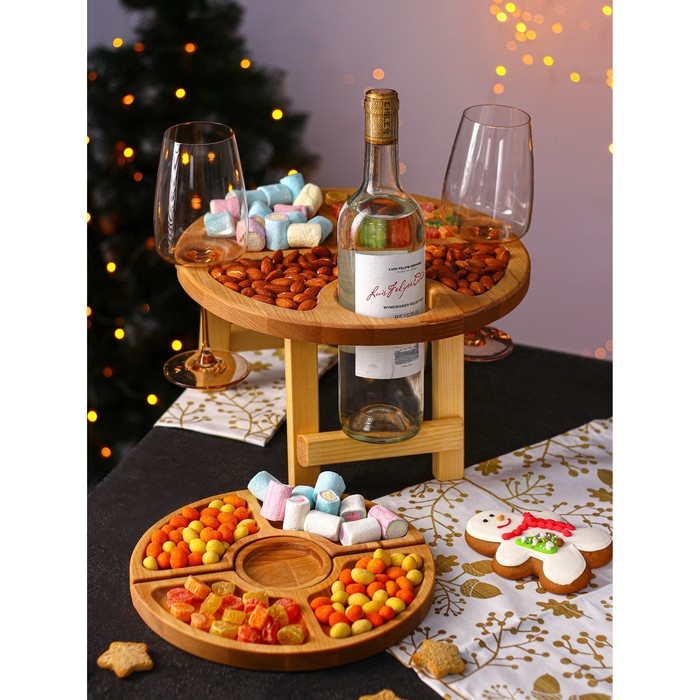 Подарочный набор деревянной посуды Adelica «Винный», столик для вина d=32 см, менажница d=25 см, подсвечник d=8 см, берёза