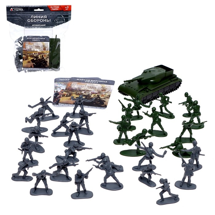 Игровой набор с карточками «Линия обороны», 30 солдатиков и 1 танк