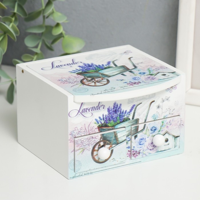Шкатулка дерево с зеркалом "Тележка с лавандой" 10,5х10,8х7 см