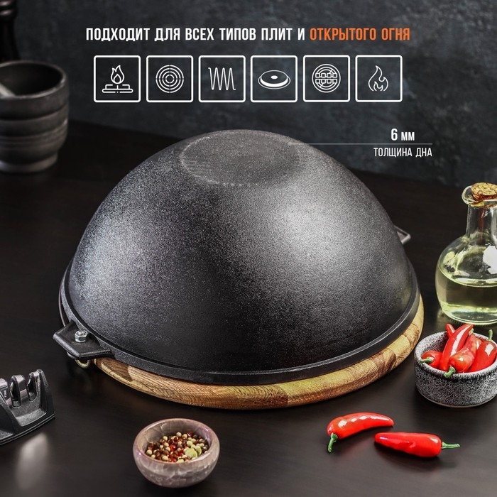 Казан чугунный Wild Kitchen «Туризм», 8 л, d=36 см, лопатка и губка в комплекте