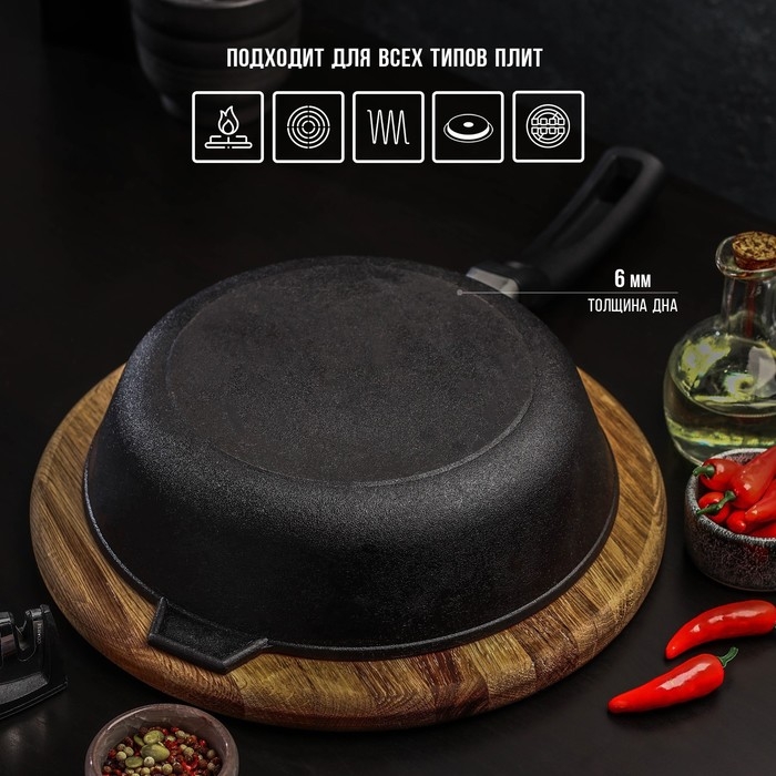 Сковорода литая чугунная Magma, d=24 см, h=6 см, пластиковая ручка, индукция
